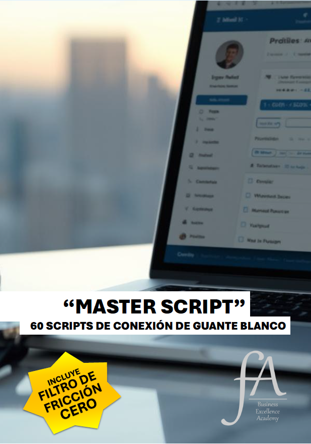 - El Master Script de 60 Mensajes: Una matriz de comunicación con scripts listos para copiar y adaptar, desde conexiones tras un post hasta mensajes directos a Headhunters. Sin fricción.